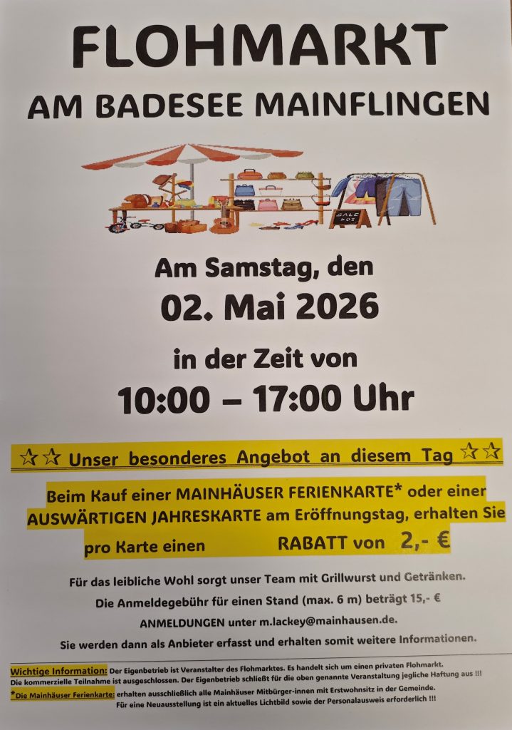 – 2.5.2026 Flohmarkt am Badesee, mit Dauerkarten Vorverkauf